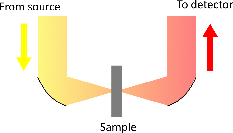 The transmittance module uses focused beams to allow characterizing various optical components (filters, windows etc.) or liquids in a cuvette. High quality transmittance spectra can be effortlessly acquired over a broad spectral range (up to 16 μm) depending on the selected detector.