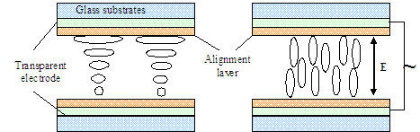 In optical systems, the Polarization is often rotated by quartz retardation plates (l/2 or l/4 plates). Quartz plate shows high quality and good transmission performances especially in the UV region. However, such plates present also some disadvantages: they are expensive, function only for a narrow spectral bandwidth and have a small incidence angle acceptance (field of view less than 2°). The liquid crystal nematic cells have therefore a large acceptance angle, function over a very large spectral range from VIS to NIR (if they are thick enough) and are less expensive. Optionally, by applying a voltage on the TN cell, the Polarization rotation can be "switched off". Also, when placing a 90° twisted cell between crossed polarizers, it can be used as a shutter.